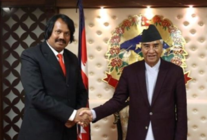 प्रधानमन्त्री शेरबहादर देउवा र जनमत पार्टीका अध्यक्ष सीके राउतबीच भेटवार्ता