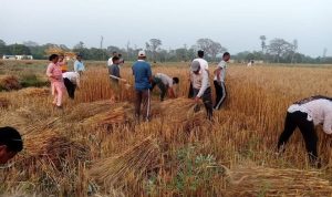 किसानका गहुँ काट्दै विप्लव नेकपाका नेताहरु