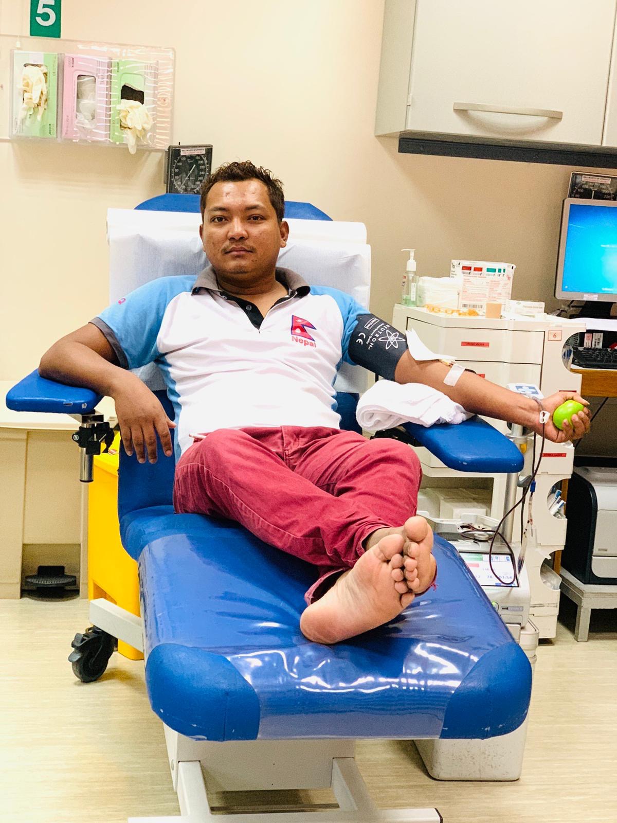 गृहपृष्ठ ∕ ग्लोबल ∕ गल्फ ∕ नेपाली जनसम्पर्क समितिको रक्तदान कार्यक्रम सम्पन्न (फोटो फिचर सहित) नेपाली जनसम्पर्क समितिको रक्तदान कार्यक्रम सम्पन्न (फोटो फिचर सहित) दीप संञ्चार भदौ २९, २०७६ गते १४:०७ मा प्रकाशित दोहा, राष्ट्रियता, प्रजातन्त्र र समाजबादका प्रतिपादक तथा नेपाली राजनीतिका शिर्ष पुरुष एवं जननायक विश्वेश्वरप्रसाद कोईरालाको १०६ औं जन्म जयन्तीको अवसर पारेर नेपाली जनसम्पर्क समिति कतारले सदा झै यस पटक पनि रक्तदान कार्यक्रम सम्पन्न गरेको छ । रक्तदान जीवन दान भन्ने मुल मन्त्रलाई अंगिकार गर्दै समितिले महामानव बिपी कोईरालाको योगदानको उच्च मुल्यांकन तथा सम्मानका साथ कतार स्थित हमाद हस्पिटलसंग सहकार्य गर्दै हमाद हस्पिटलको ब्लड डोनर सेन्टरमा गत शुत्रबार रक्तदान कार्यक्रम सम्पन्न गरेको हो ।नेपाली जनसंपर्क समिती कतारले बिगतका बर्ष देखी गर्दै आएको नियमित रक्त दान कार्यक्रम लाई यसपटक नेपाली कांग्रेसको केन्द्रिय निती अनुसार जन जागरण कार्यक्रम पनि जोडीएको थियो । रक्तदान कार्यक्रममा जनसम्पर्क समितिका अग्रज व्यक्तित्वहरु, समाजका प्रभुत्व व्यक्ति सामाजिक अभियानता हरु, बिभिन्न बैचारिक सस्थाका प्रमुक ज्युहरु, एनआरएनएका अभियान्ता ज्युहरु, सामाजिक संघसंस्थाका प्रमुख ज्युहरु, कतारस्थित गल्फ टाइम्सका प्रतिनिधि एवं नेपाली पत्रकारहरुको बाक्लो उपस्थिति रहेको थियो ।नेपालमा बिपी जयन्तीमा ब्रिक्षारोपण गर्दै मनाइने चलन छ भने दोहाको बस्तुथिति र कानुनलाई सम्मान गर्दै जनसंपर्कले मानवीय कार्य स्वरुप रक्त दान गर्दै आएको छ । समिती रक्तादान गरेबापत हमाद हस्पिटलबाट विश्व रक्तदान दिवसको दिन सम्मानित हुने पहिलो बैचारिक संस्था पनि हो ।उल्लासमय उपस्थितिका वीच समीतिका प्रमुख सल्लाहकार विमल सुवेदी बाट सुरवात भएको रक्तदानमा ६५ जनाले स्वास्थ्य जाँच गराएका थिए भने ५३ जना रक्तदाताहरुले रक्तदान गर्न सफल भएका थिए । कतार स्थित विभिन्न बैचारी एवं सामाजिक संस्थाका सामाजिक ब्यक्तित्वहरुका साथ मित्र राष्ट्र भारत र श्रीलंका लगाएतका नागरीक समेत स्व स्फूर्त सहभागि रहेकको कार्यक्रममा प्रमुख सल्लाहकार सुवेदीको १२ औं रक्तदान गरी तेस्रो स्थान रहेको थियो भने एनआरएनए आईसिसी कोपेट मेम्बर विनोद भट्टराईले ३९ औं रक्तदान गरी पहिलो अत्यधिक रक्तदाता भएका थिए । त्यस्तै दिप संञ्चार मिडियाका प्रधान सम्पादक दीपजंग शाह र जिपी कोईराला फ़ाउन्डेशन कतारका संयोजक अर्जुन चापागाई दुबैको २६/२६ औं पटक रक्तदान गरी दोस्रो स्थान लिएका थिए भने जन सम्पर्क समितिका पूर्व कार्यसमिति सदस्य शशिधर शर्माले ८ औं पटक रक्तदान गरी चौथो अत्यधिक रक्तदाताका रुपमा प्रसंशा पाएका थिए ।समितिले