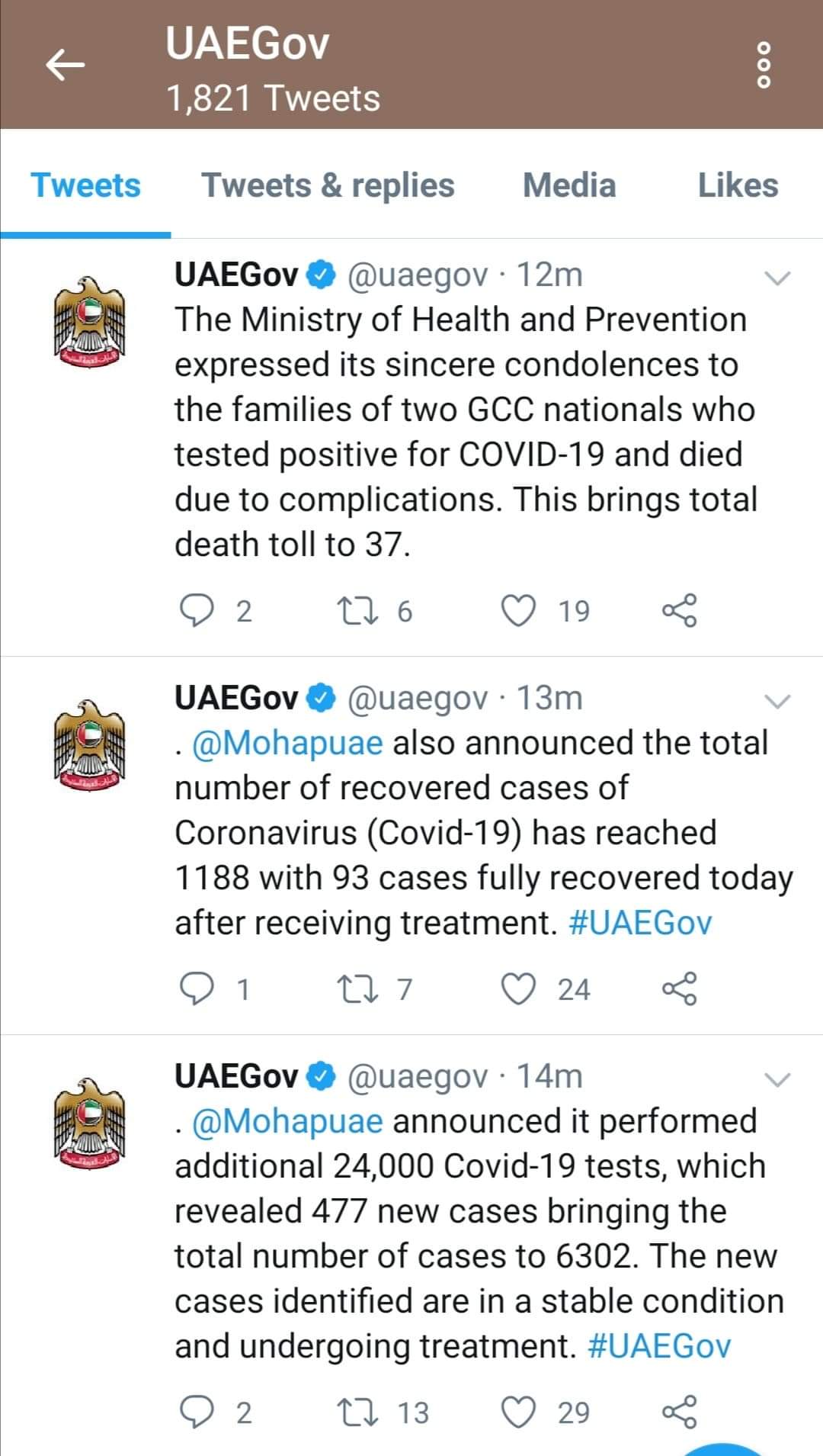 गृहपृष्ठ ∕ ग्लोबल ∕ गल्फ ∕ कोरोना अपडेट : दुबईमा किटाणुरहित कार्यक्रम एक हप्ताको लागि थप : कोरोनाका ४७७ नयाँ संक्रमित थपिए कोरोना अपडेट : दुबईमा किटाणुरहित कार्यक्रम एक हप्ताको लागि थप : कोरोनाका ४७७ नयाँ संक्रमित थपिए सुर्य बहादुर खवास वैशाख ६, २०७७ गते १:५७ मा प्रकाशित युएई – कोरोना भाइरसको संक्रमणलाई नियन्त्रण गर्ने उद्देश्यले गत २ हप्ताबाट चौबीसै घण्टा संचालन गर्दै आएको सार्वजनिक स्थल किटाणुरहित गर्ने कार्यक्रमलाई थप एक हप्ताको लागि निरन्तरता दिने भएको छ ।आज शुक्रबार संकट तथा विपद् व्यवस्थापनको सर्वोच्च समितिले शेख मंसूर बिन मोहम्मद बिन रशीद अल मकतूमको अध्यक्षतामा बसेको बैठकले दुबईमा चौबीसै घन्टा किटाणुरहित गर्ने कार्यक्रम थप एक हप्ताको लागि विस्तार गर्ने निर्णय गरेको हो । गत दुई हप्ताको संचालन भएको कार्यक्रमको सकारात्मक प्रभाव रहेको निष्कर्ष समेत निकालेको स्थानीय समाचार संस्था गल्फ न्युजले उल्लेख गरेको छ ।यसैगरि आज (१७ अप्रिल) युएई सरकारले दिएको जानकारी अनुसार कोरोना भाईरसको ४७७ जना नयाँ सक्रमित फेला परेका छन । यो सँगै संक्रमितको संख्या ६ हजार ३ सय २ पुगेको छ । त्यसैगरी आज ९३ जनाले स्वास्थ्य लाभ गरेका छन ।यो सँगै स्वास्थ्य लाभ गर्नेको संख्या १ हजार १ सय ८८ पुगेको छ । आज मृत्यु हुने जिसिसीका २ जना सहित मृत्यु हुनेको संख्या ३७ पुगेको छ ।क्याटेगोरी : गल्फट्याग : #breaking, #corona तपाईको प्रतिक्रिया दिनुहोससम्बन्धित समाचारएनआरएन अध्यक्ष श्रेष्ठ र एफएनसीसीआई अध्यक्ष ढकालबीच ‘एनआरएन इन्भेस्टमेन्ट समिटबारे…नेपाली व्यवसायी संघद्वारा प्रथम सचिव कृष्ण कुमार सुवेदीलाई भव्य सम्मान…एनआरएनएको हितमा एक्लै भएपनि उभिन्छौँ – भट्टहर्मोसा ब्युटीपार्लरको दोस्रो वार्षिकोत्सव सप्पन्न धेरै पढिएका १नेपाली जनसम्पर्क समिति कतारको आयोजनामा बृहत् रक्तदान कार्यक्रम हुदै २दाङ देउखुरी सेवा समाज कतारले साताै साधारण सभा गर्दै ३कतारमा पनि मनाइदै ३०३ औं पृथ्वी जयन्ती ४ठकुरी सहयोग संजाल कतारको आयोजनामा रक्तदान कार्यक्रम हुदै ५प्रवासी भुजेल समाज कतारले पहिलो पटक रक्तदान कार्यक्रमको आयोजना गर्दै ६मगरहरुको प्रमुख राष्ट्रिय चाड माघ्या सकराटी पर्व कतारमा पनि भब्य रुपमा मनाईदै ७विकासानन्द फाउन्डेसन विश्व परिवारद्वारा कतारमा योग साधना कार्यक्रम हुदै ८पत्रकार भण्डारीको उपन्यास बोरा कतारमा बिमोचन ताजा अपडेट एनआरएनएको उच्चस्तरीय मेलमिलाप समितिमा चार सदस्य थप कतार आइपुगे पूर्व परराष्ट्र मन्त्री महत । एनआरएन अध्यक्ष श्रेष्ठ र एफएनसीसीआई अध्यक्ष ढकालबीच ‘एनआरएन इन्भेस्टमेन्ट समिटबारे छलफल ठकुरी सहयोग सञ्जाल, कतारले आफ्नो ११ औं वार्षिकोत्सव भव्य रूपमा म