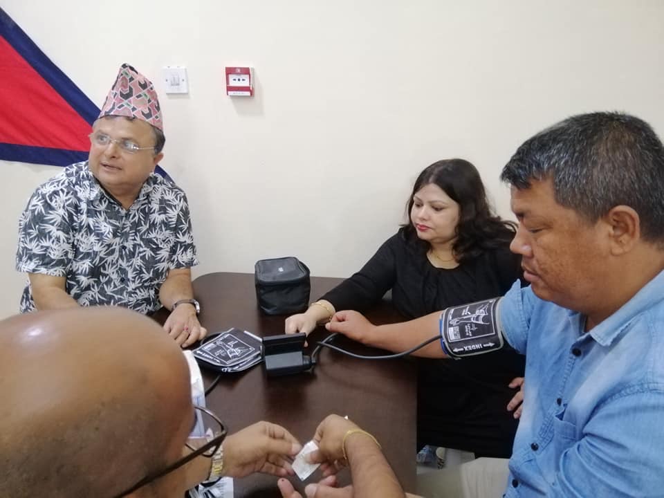 गृहपृष्ठ ∕ ग्लोबल ∕ गल्फ ∕ विवेकशील नेपालीद्वारा कतारमा निःशुल्क स्वास्थ्य परीक्षण विवेकशील नेपालीद्वारा कतारमा निःशुल्क स्वास्थ्य परीक्षण दीप जङ्ग शाह असार २, २०७६ गते ३:४२ मा प्रकाशित दोहा, विवेकशील नेपाली कतारको आयोजनामा शुक्रवार चियाचौतारी कार्यक्रम एवं निःशुल्क स्वास्थ्य परीक्षण सम्पन्न भएको छ ।कार्यक्रमका अतिथि डा. राकेश कुमारले सकारात्मक सोच, देशको राजनीति अवस्था र स्वास्थ्य शिक्षा बारे चर्चा गर्दै विवेकशील नेपाली (दल) कतारले गरेको सकारात्मक कार्य बारे खुलेरै प्रसंसा गरे । कतारमा यो फरक शैलीको कार्यक्रम पहिलो अनुभव भएको बताउदै कुमारले भने, ‘नेपालीहरूको स्वास्थ्यको लागी विवेकशील नेपाली कतारले गरेको कार्य प्रशंसनीय छ ।’चिन्तनशील यूवाहरूले नै देश र समाजलाई केही गर्नेमा विश्वास राख्ने डा. कुमारले ३५ जाना नेपालीहरूको स्वास्थ परीक्षण गरेका थिए l परीक्षण कार्यक्रममा ब्लड प्रेसर, सुगर साथै स्वास्थ्य समन्धि जानकरी दिएका थिए l“कविता वाचन गर्दै दीप मिलन”कार्यक्रममा साहित्यकार दीप मिलनले राष्ट्र भक्ति कविता वाचन गरी उपस्थित साथीहरूलाई थप ऊर्जा प्रदान गरेको दलका केन्द्रीय सदस्य सुरेश भट्टले दीप सञ्चार मिडीयालाई जानकारी दिएका हुन् ।स्वास्थ्य परीक्षणका केही तस्वीरहरु :📷फोटो: सुरेश भट्ट आश्रिन क्याटेगोरी : गल्फट्याग : #breaking तपाईको प्रतिक्रिया दिनुहोससम्बन्धित समाचारएनआरएन अध्यक्ष श्रेष्ठ र एफएनसीसीआई अध्यक्ष ढकालबीच ‘एनआरएन इन्भेस्टमेन्ट समिटबारे…नेपाली व्यवसायी संघद्वारा प्रथम सचिव कृष्ण कुमार सुवेदीलाई भव्य सम्मान…एनआरएनएको हितमा एक्लै भएपनि उभिन्छौँ – भट्टहर्मोसा ब्युटीपार्लरको दोस्रो वार्षिकोत्सव सप्पन्न धेरै पढिएका १नेपाली जनसम्पर्क समिति कतारको आयोजनामा बृहत् रक्तदान कार्यक्रम हुदै २दाङ देउखुरी सेवा समाज कतारले साताै साधारण सभा गर्दै ३कतारमा पनि मनाइदै ३०३ औं पृथ्वी जयन्ती ४प्रवासी भुजेल समाज कतारले पहिलो पटक रक्तदान कार्यक्रमको आयोजना गर्दै ५ठकुरी सहयोग संजाल कतारको आयोजनामा रक्तदान कार्यक्रम हुदै ६मगरहरुको प्रमुख राष्ट्रिय चाड माघ्या सकराटी पर्व कतारमा पनि भब्य रुपमा मनाईदै ७विकासानन्द फाउन्डेसन विश्व परिवारद्वारा कतारमा योग साधना कार्यक्रम हुदै ८पत्रकार भण्डारीको उपन्यास बोरा कतारमा बिमोचन ताजा अपडेट एनआरएनएको उच्चस्तरीय मेलमिलाप समितिमा चार सदस्य थप कतार आइपुगे पूर्व परराष्ट्र मन्त्री महत । एनआरएन अध्यक्ष श्रेष्ठ र एफएनसीसीआई अध्यक्ष ढकालबीच ‘एनआरएन इन्भेस्टमेन्ट समिटबारे छलफल ठकुरी सहयोग सञ्जाल, कतारले आफ्नो ११ औं वार्षिकोत्सव भव्य रूपमा मनाउदै नेपाली व्यवसायी संघद्वारा प्रथम सचिव
