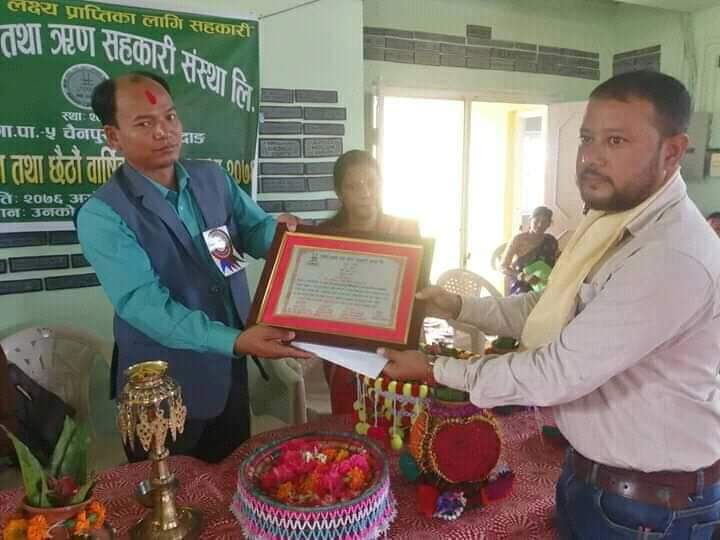 गृहपृष्ठ ∕ प्रदेश खबर ∕ प्रदेश ५ ∕ वडाध्यक्ष भण्डारी सम्मानित वडाध्यक्ष भण्डारी सम्मानित प्रिया स्मृती गजमेर असोज ३०, २०७६ गते १८:१९ मा प्रकाशित दाङ ,उनको बचत तथा ऋण सहकारी संस्था गढवाले गढवा गाउँपालिका वडा नम्बर ५ का वडा अध्यक्ष प्रकाश भण्डारीलाई सम्मान गरेको छ ।क्रियटिङ्ग पोसीब्लिटिज नेपालको कार्यक्रम अन्तर्गत गढवा गाँउपालिका वडा नम्बर ५ लोखरपुर निवासी नौनि चौधरीको अावास निर्माणका क्रममा अाफ्नो तलब भत्ता कटौती गरि अार्थिक रुपमा उल्लेख्यनिय सहयोग पुर्याकाे भन्दै वडाध्यक्ष भण्डारीलाई सम्मान गरिएको हो ।विहिवार गढवामा संस्थाकाे दोस्रो अधिबेसन तथा छैँठौ बार्षिक साधारण सभाको अबसरमा भण्डारीलाई सम्मान गरिएको हो । भण्डारीलाई प्रदेश साँसद ईन्द्रजित थारुले कदर पत्र र दोसल्ला अोढाई सम्मान गरेका हुन ।क्याटेगोरी : समाचार, प्रदेश ५ तपाईको प्रतिक्रिया दिनुहोससम्बन्धित समाचारएनआरएनएको उच्चस्तरीय मेलमिलाप समितिमा चार सदस्य थपकतार आइपुगे पूर्व परराष्ट्र मन्त्री महत । एनआरएन अध्यक्ष श्रेष्ठ र एफएनसीसीआई अध्यक्ष ढकालबीच ‘एनआरएन इन्भेस्टमेन्ट समिटबारे…ठकुरी सहयोग सञ्जाल, कतारले आफ्नो ११ औं वार्षिकोत्सव भव्य रूपमा… धेरै पढिएका १नेपाली जनसम्पर्क समिति कतारको आयोजनामा बृहत् रक्तदान कार्यक्रम हुदै २दाङ देउखुरी सेवा समाज कतारले साताै साधारण सभा गर्दै ३प्रवासी भुजेल समाज कतारले पहिलो पटक रक्तदान कार्यक्रमको आयोजना गर्दै ४कतारमा पनि मनाइदै ३०३ औं पृथ्वी जयन्ती ५ठकुरी सहयोग संजाल कतारको आयोजनामा रक्तदान कार्यक्रम हुदै ६मगरहरुको प्रमुख राष्ट्रिय चाड माघ्या सकराटी पर्व कतारमा पनि भब्य रुपमा मनाईदै ७विकासानन्द फाउन्डेसन विश्व परिवारद्वारा कतारमा योग साधना कार्यक्रम हुदै ८पत्रकार भण्डारीको उपन्यास बोरा कतारमा बिमोचन ताजा अपडेट एनआरएनएको उच्चस्तरीय मेलमिलाप समितिमा चार सदस्य थप कतार आइपुगे पूर्व परराष्ट्र मन्त्री महत । एनआरएन अध्यक्ष श्रेष्ठ र एफएनसीसीआई अध्यक्ष ढकालबीच ‘एनआरएन इन्भेस्टमेन्ट समिटबारे छलफल ठकुरी सहयोग सञ्जाल, कतारले आफ्नो ११ औं वार्षिकोत्सव भव्य रूपमा मनाउदै नेपाली व्यवसायी संघद्वारा प्रथम सचिव कृष्ण कुमार सुवेदीलाई भव्य सम्मान तथा बिदाइ गैरआवासीय नेपाली संघको उपाध्यक्षमा श्रेष्ठ, निरन्तर योगदान र नेतृत्व क्षमतामा सधैं अब्बल एनआरएनएको एकता महाधिवेशन गर्ने बाटो खुला, शनिबार हायात होटेलमा उद्घाटन हुने एनआरएनएको हितमा एक्लै भएपनि उभिन्छौँ – भट्ट