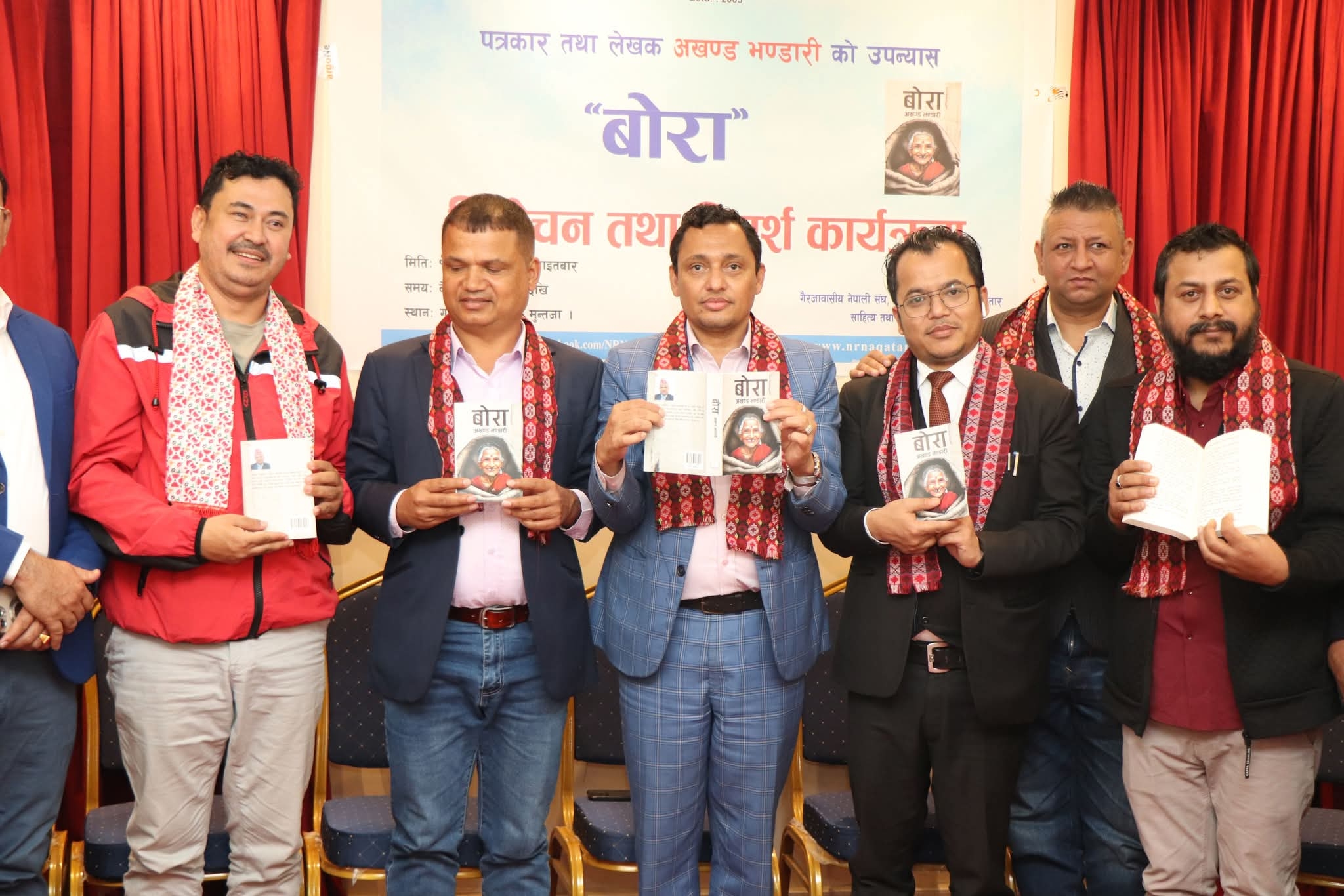 गृहपृष्ठ ∕ ग्लोबल ∕ पत्रकार भण्डारीको उपन्यास बोरा कतारमा बिमोचन पत्रकार भण्डारीको उपन्यास बोरा कतारमा बिमोचन दीप संञ्चार फागुन ६, २०८१ गते १४:४९ मा प्रकाशित दोहा- पत्रकार तथा लेखक अखण्ड भण्डारीको उपन्यास बोरा कतारमा बिमोचन गरिएको छ।गैरआवासीय नेपाली संघ, राष्ट्रिय समन्वय परिषद कतारको साहित्य तथा प्रकाशन विभागको आयोजनामा अन्नपूर्ण पोस्ट दैनिकका प्रधान सम्पादक समेत रहेका लेखक भण्डारीको उपन्यास बोरा कतारमा बिमोचन गरिएको हो।एनआरएनए एन सि सि कतारका अध्यक्ष रमेश भट्टको अध्यक्षता र लेखक भण्डारीको प्रमुख आथित्यतामा सम्पन्न भएको कार्यक्रममा उपन्यासको बारेमा लेखक तथा साहित्यकार सुरेश भट्ट आस्रिनले प्रकाश पारेका थिए।मुन्तजामा रहेको गोर्खाली रेष्टुरेन्टको सभाहलमा सप्पन्न कार्यक्रममा आइसीसी सदस्य दिपजंग शाह,नेपाल पत्रकार महांसघ कतारका अध्यक्ष दिल कुमार श्रेष्ठ,सामाजिक व्यक्तित्व बिमल सुवेदी लगायतको उपस्थिति रहेको थियो lकार्यक्रममा आफ्ना धारणा राख्दै प्रमुख अतिथि तथा लेखक भण्डारीले बोरा भित्र ब्रेरे आफ्नी आमालाई कसरि छोरा र बुहारिले खोला किनारमा फाले ? कसरि फेला परिन र कसरि भण्डारीले भेटे र उपन्यास भन्यो भन्ने पलहरु सुनाएका थिए lएन सि सि कतारका प्रथम उपाध्यक्ष कृष्ण पन्थीले स्वागत गरेको कार्यक्रमको सहजीकरण एन सि सि कतारका सचीव सन्तोष क्षेत्रीले गरेका थिए।क्याटेगोरी : ग्लोबल, समाचार तपाईको प्रतिक्रिया दिनुहोससम्बन्धित समाचारएनआरएनएको उच्चस्तरीय मेलमिलाप समितिमा चार सदस्य थपकतार आइपुगे पूर्व परराष्ट्र मन्त्री महत । एनआरएन अध्यक्ष श्रेष्ठ र एफएनसीसीआई अध्यक्ष ढकालबीच ‘एनआरएन इन्भेस्टमेन्ट समिटबारे…ठकुरी सहयोग सञ्जाल, कतारले आफ्नो ११ औं वार्षिकोत्सव भव्य रूपमा… धेरै पढिएका १नेपाली जनसम्पर्क समिति कतारको आयोजनामा बृहत् रक्तदान कार्यक्रम हुदै २दाङ देउखुरी सेवा समाज कतारले साताै साधारण सभा गर्दै ३प्रवासी भुजेल समाज कतारले पहिलो पटक रक्तदान कार्यक्रमको आयोजना गर्दै ४कतारमा पनि मनाइदै ३०३ औं पृथ्वी जयन्ती ५ठकुरी सहयोग संजाल कतारको आयोजनामा रक्तदान कार्यक्रम हुदै ६मगरहरुको प्रमुख राष्ट्रिय चाड माघ्या सकराटी पर्व कतारमा पनि भब्य रुपमा मनाईदै ७विकासानन्द फाउन्डेसन विश्व परिवारद्वारा कतारमा योग साधना कार्यक्रम हुदै ८पत्रकार भण्डारीको उपन्यास बोरा कतारमा बिमोचन ताजा अपडेट एनआरएनएको उच्चस्तरीय मेलमिलाप समितिमा चार सदस्य थप कतार आइपुगे पूर्व परराष्ट्र मन्त्री महत । एनआरएन अध्यक्ष श्रेष्ठ र एफएनसीसीआई अध्यक्ष ढकालबीच ‘एनआरएन इन्भेस्टमेन्ट समिटबारे छलफल ठकुरी सहयोग सञ्जाल, कतारले आफ्नो ११ औं वार्षिकोत्सव भव्य रूप